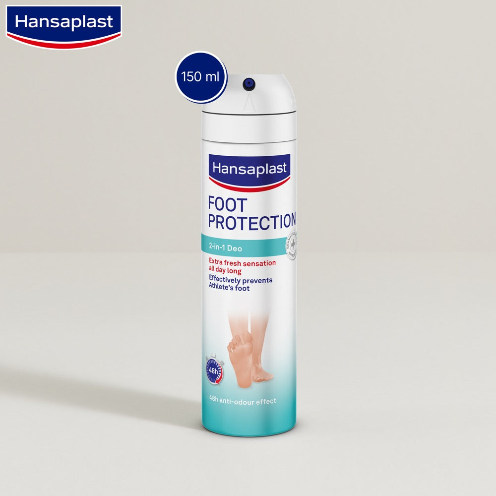 مزيل عرق القدمين هانزابلاست 2 في 1 سعة 150 مل يكافح البكتيريا المسببة للرائحة، ويوفر حماية من الرائحة لمدة 48 ساعة.