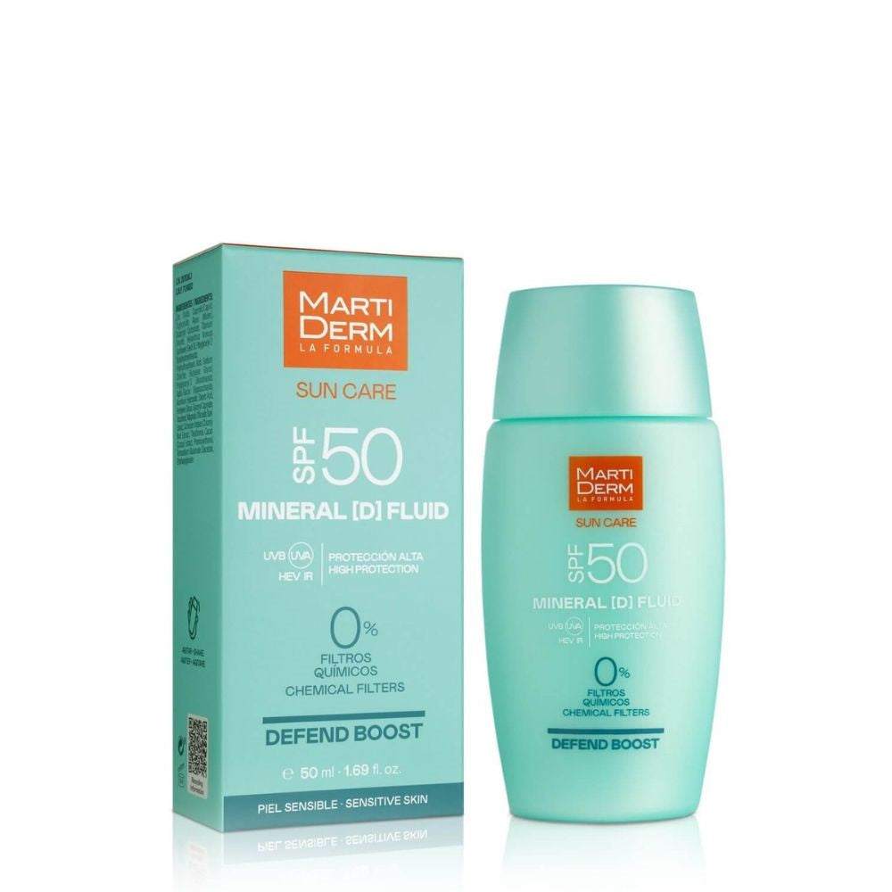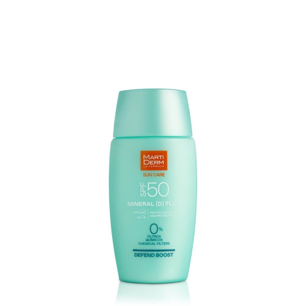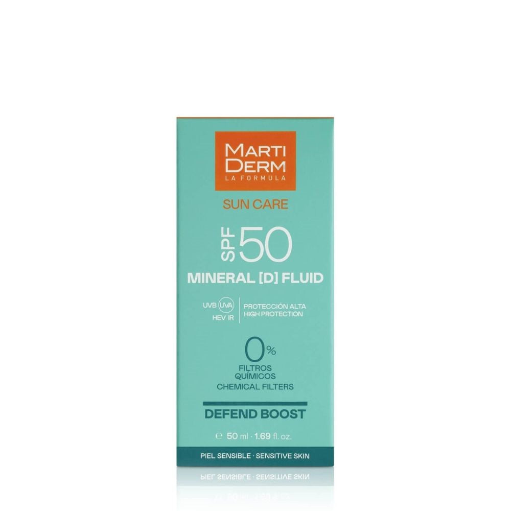 مارتي ديرم صن كير مينيرال [D] فلويد SPF50 سعة 50 مل هو واقي شمسي للوجه يوفر أقصى حماية من الأشعة فوق البنفسجية (UVA، UVB، الأشعة تحت الحمراء، والضوء الأزرق). مناسب للبشرة الحساسة، ويحتوي على مرطبات ومضادات أكسدة وبريبيوتيك تعزز آليات الدفاع الطبيعية للبشرة.