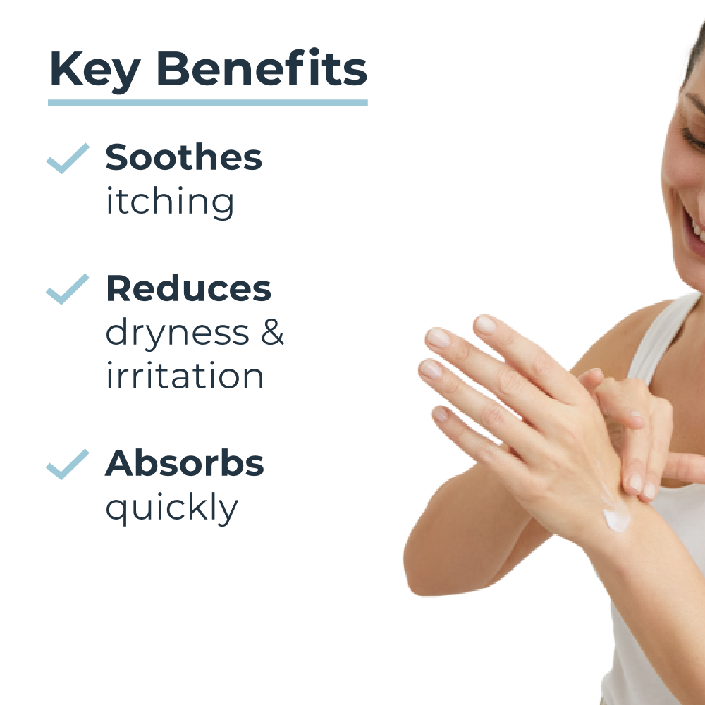 Adequado para o tratamento do eczema das mãos, incluindo em pele atópica, permite acalmar e regenerar a pele. Confere uma maior resistência e elasticidade à sua pele, independentemente do aumento de lavagens das mãos. Pode ser utilizado durante as fases mais agudas da atopia. Trata-se de um produto de utilização diária, que previne a comichão, assim como a secura e a irritação das mãos, resultante das frequentes lavagens de mãos. Acalma a pele durante a inflamação.
