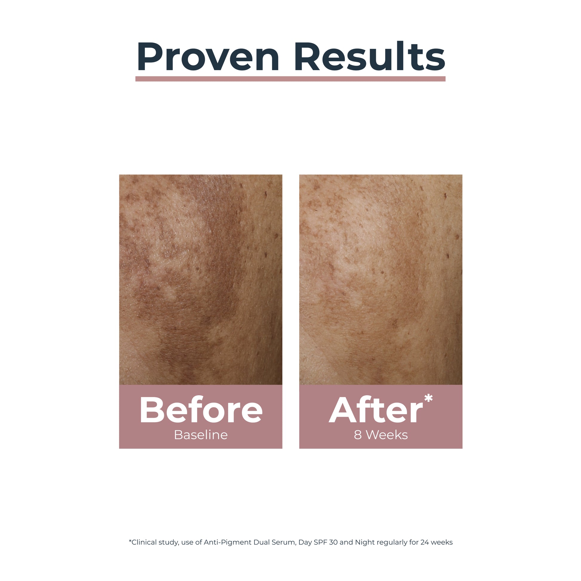Proteção FPS30 reduz e previne o surgimento de manchas de pigmentação resultantes da exposição solar. Com resultados visíveis em 2 semanas, que são maximizados com a utilização contínua e regular.