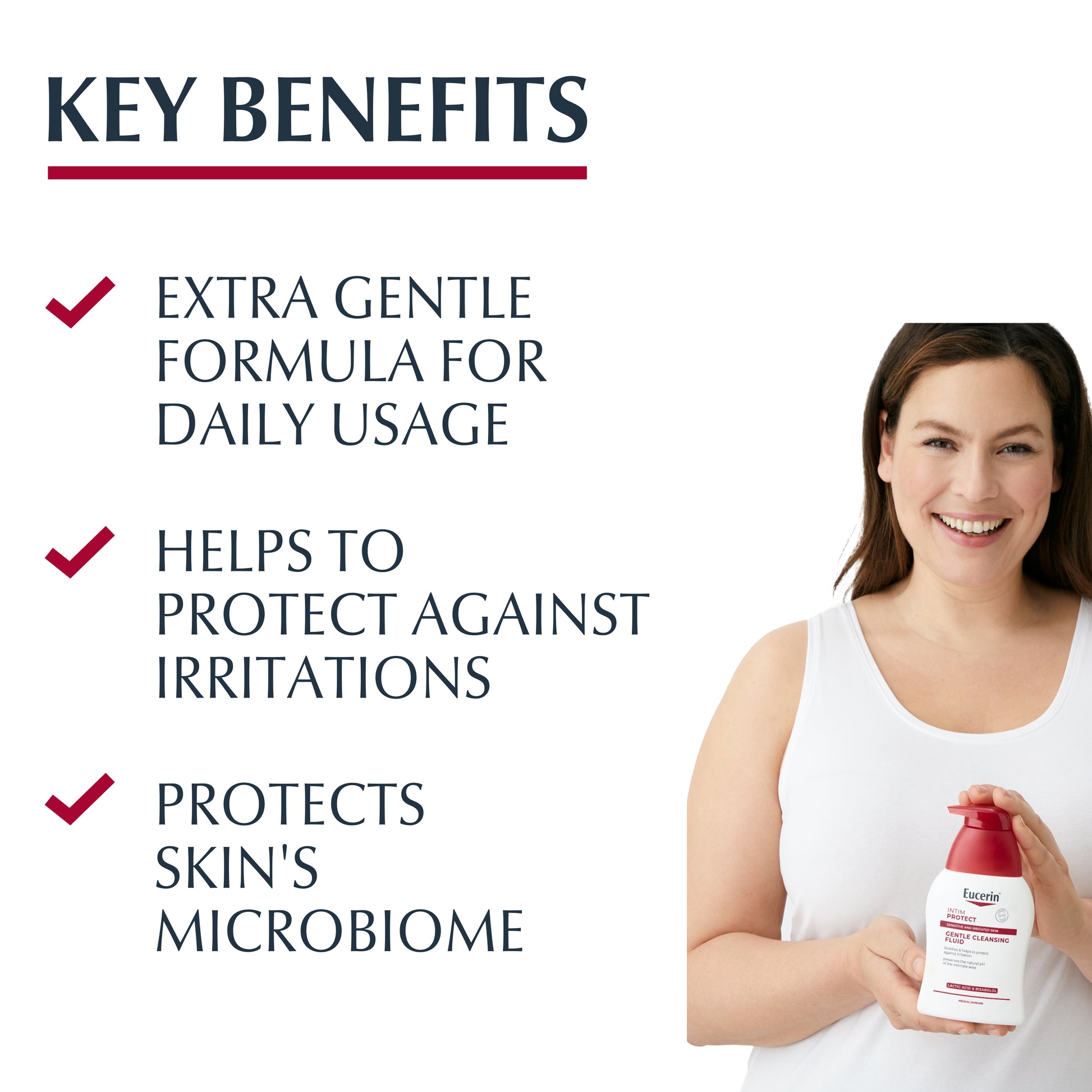 Eucerin pH5 Intim Protect Gel 250 ml é um gel para a higiene da zona íntima, que limpa de forma suave e mantém o equilíbrio natural do microbioma, respeitando o pH da zona íntima.