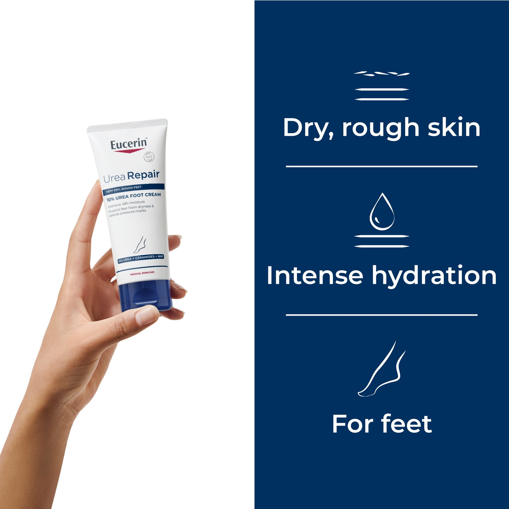Eucerin UreaRepair Plus Creme de Pés 10% Ureia 100ml hidrata de forma profunda a pele dos pés, mantendo o seu teor de água.