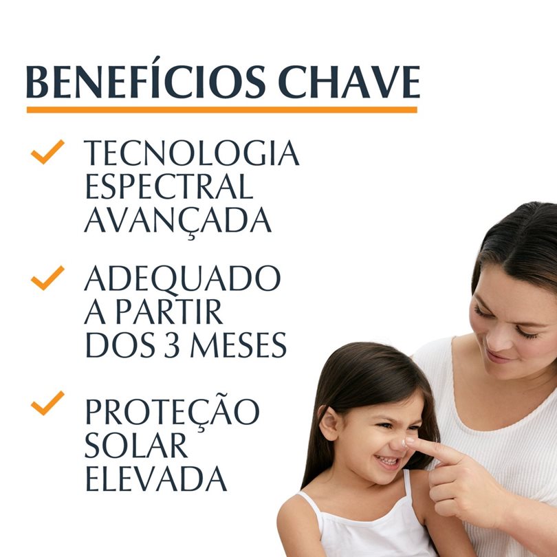 É um spray de aplicação prática, que conta com uma textura leve e resistente à água, oferecendo assim uma proteção contra queimaduras solares, conseguindo em simultâneo reduzir o risco de danos a longo prazo causados pelos raios UV na pele das crianças.