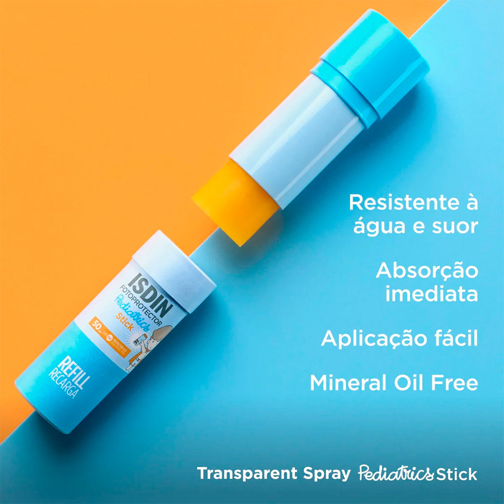 Isdin Pediatrics Stick Refill SPF50 20g protege as zonas mais sensíveis e expostas da pele mais delicada das crianças.