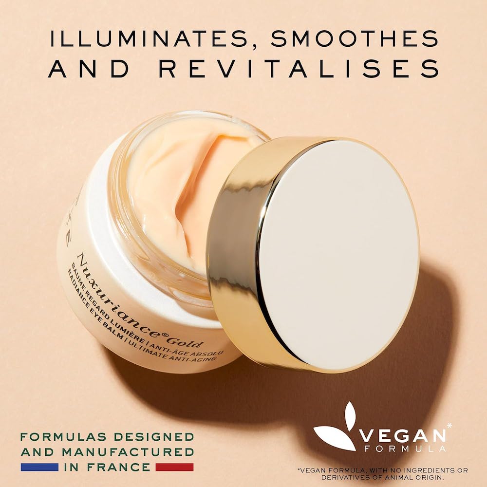 O Nuxe Nuxuriance Gold Radiance Eye Balm é um bálsamo que reduz os sinais de envelhecimento e ilumina o contorno dos olhos. É adequado para peles secas e sensíveis. Enriquecido com as Células Bi-Floral de Açafrão e Bougainvillea e Oléoactif de Rosa de Porcelana, a fórmula suaviza, hidrata e refresca a delicada área dos olhos.