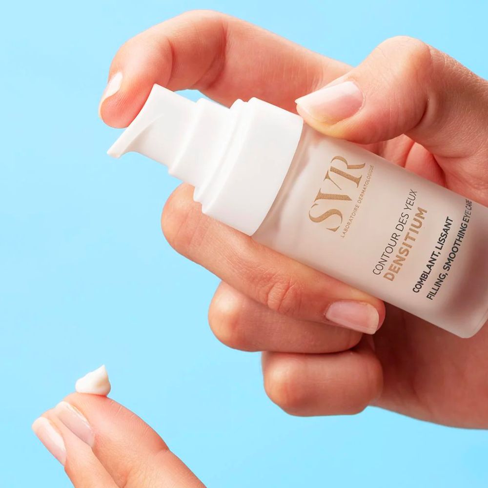 SVR Densitium Contorno dos Olhos 15 ml permite uma correção 360º, preenchendo e alisando a pele ao longo de todo o contorno dos olhos.